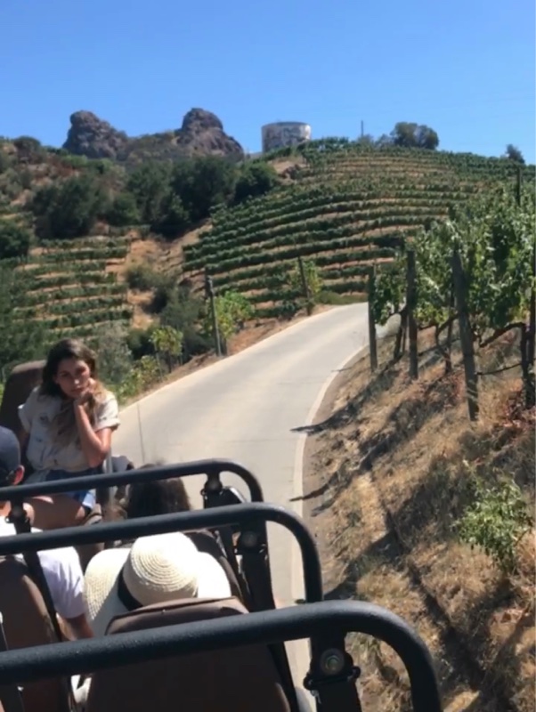 It may get a little bumpy so buckle up. Hold onto your hats. We’re going down a steep hill. Wooooah! Okay, got the adrenaline going. Now, you will start to see the infinite rows of grape vines. The greenery is breathtaking!